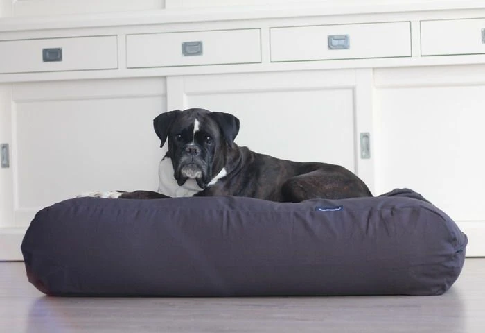Het donkergrijs hondenkussen is stevig en voelt zacht aan. Grijs is een graag geziene kleur en past in ieder interieur. Het donkergrijs hondenkussen van canvas katoen is een echte eyecatcher!