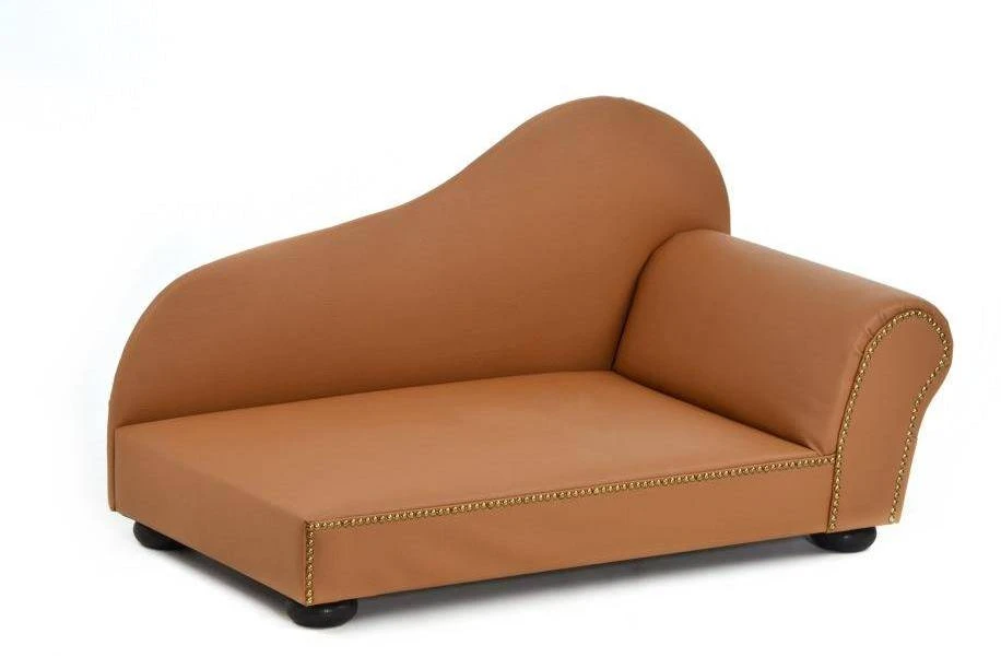 Hondensofa Ottomane Kunstleer Bruin Deze Ottomane hondensofa is handgemaakt van bruin kunstleer en biedt uw hond een heerlijk plekje om te rusten of te slapen. Het kunstleer is van eersteklas kwaliteit en is gemakkelijk met een vochtige doek te reinigen. Deze mand is geschikt voor kleinere honden. Afmetingen : lengte 75 cm x breedte 39 cm x hoogte 40 cm. Bepaal de juiste maat voor uw hond: